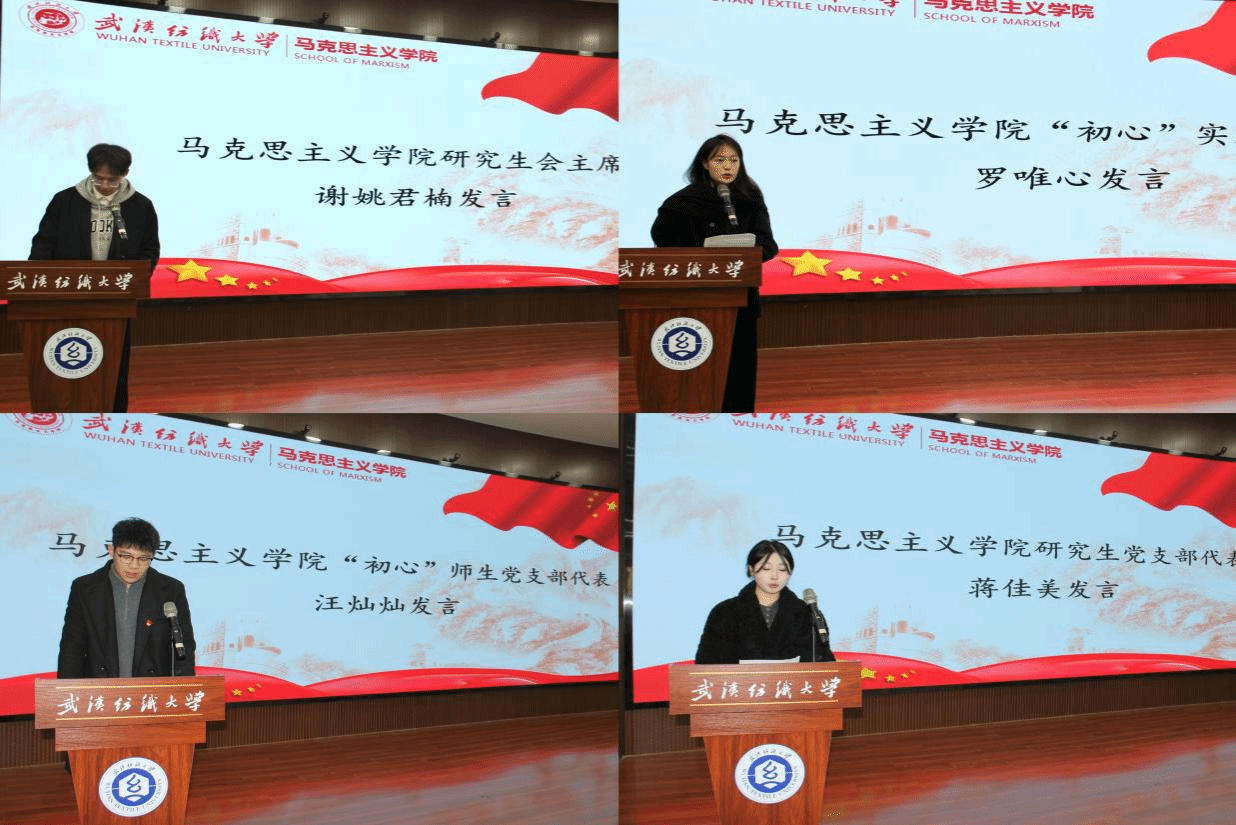 必赢贵宾会3003官网研究生会主席谢姚君楠、“初心”实践团团长罗唯心、“初心”师生党支部代表汪灿灿以及研究生党支部代表蒋佳美分别上台代表学生组织作年度总结报告。他们总结了过去一年各部门在学术交流、文体活动、志愿服务和学生综合素质提升等方面的成绩。同时,针对工作中的不足进行了反思,并对未来的工作提出了展望与规划。