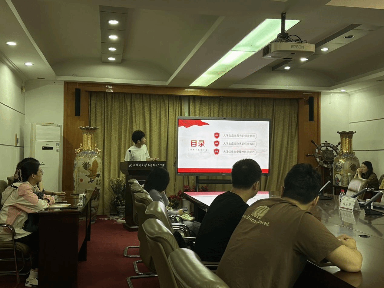 会议伊始,研一班长陈文鑫强调了保密工作的重要性,并通过PPT里的案例剖析了当前保密工作面临的严峻形势。