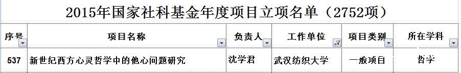 沈学君副教授《新世纪西方心灵哲学中的他心问题研究》获国家社科立项
