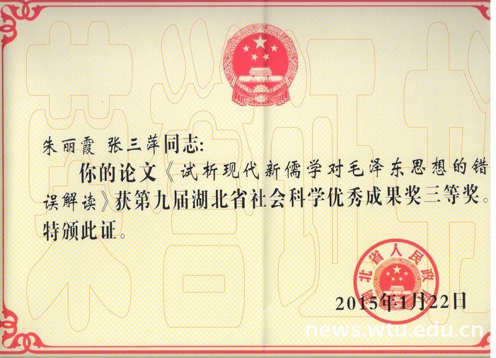 朱丽霞教授科研成果获湖北省社科三等奖