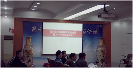 会上,两位2016年国家社科基金申报成功的老师代表分别交流了经验。周雪峰老师从基础研究及申报注意事项等方面谈了自己独到的见解。