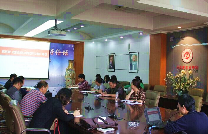 在对《大纲》内容的解读上,贾轶博士主要做了三个方面的讲解。一是讨论了恩格斯对国民经济学发展历史的把握。《大纲》涉及重商主义、英国古典经济学的主要代表斯密和李嘉图、庸俗经济学家马尔萨斯、萨伊,以及德国历史学派先驱李斯特等资产阶级经济学家的重要观点,体现出恩格斯对于国民经济学或政治经济学的历史脉络具有基本的把握。二是强调恩格斯对资产阶级国民经济学总体性质的判断。恩格斯不仅纵向总体分析了国民经济学的私有财产本质,把资产阶级经济和经济学的各种规律和范畴都同私有财产相联系,认为要消除其消极后果只有消灭资本主义私有制,同时恩格斯也指出了古典经济学的进步性即探讨了私有财产关系的规律。三是解读恩格斯对国民经济学各种范畴和理论的具体批判。如认为恩格斯对价值范畴的分析和批判表明,虽然此时恩格斯对抽象价值的意义认识不足,但表现出李嘉图学派价值论的简单直线化和庸俗化的缺陷和后果。恩格斯所提出的“价值是生产费用对效用的关系”的观点也为后人研究共产主义条件下的价值问题提供了思路。资本主义的各种经济运动都是在竞争规律的作用下实现的,恩格斯从多个方面论述了竞争问题。恩格斯还批判了马尔萨斯的人口论,批判分析了生产费用和生产要素、地租和土地价值、资本和劳动、利润及利息、机器和工人等等范畴和理论。