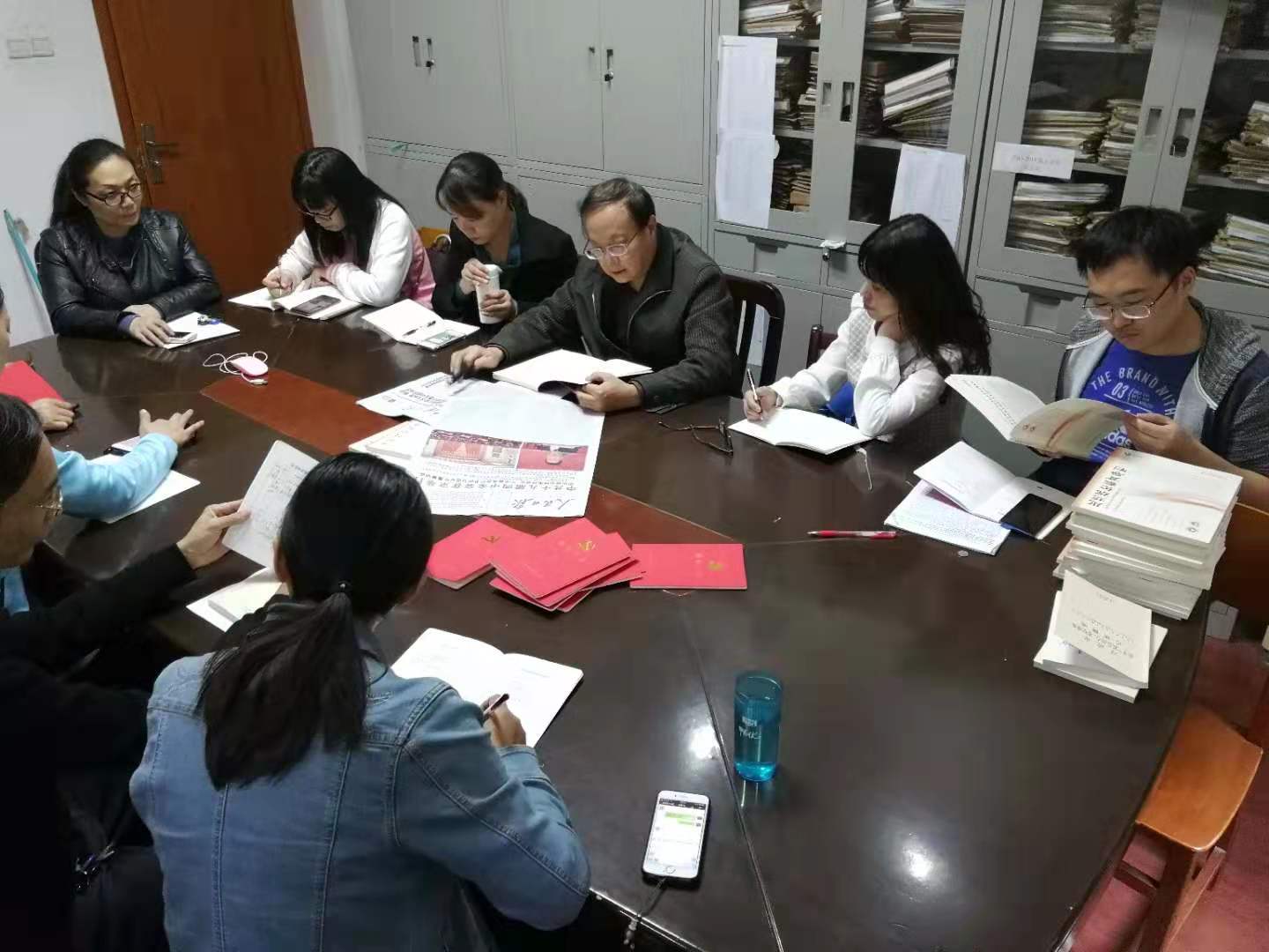 2019年11月7日下午,必赢贵宾会3003官网教工二支部组织全体党员,在思想政治教育教学部开展“不忘初心牢记使命”专题党日活动,重点学习《中共中央关于坚持和完善中国特色社会主义制度 推进国家治理体系和治理能力现代化若干重大问题的决定》,由张建林教授为大家讲解党的十九届四中全会精神。支部书记方芳主持学习。