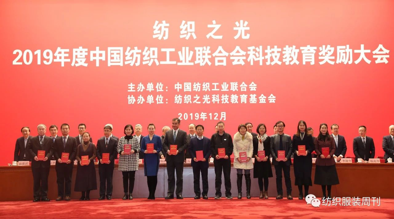 12月6日,由中国纺织工业联合会主办、纺织之光科技教育基金会协办的“纺织之光”2019年度中国纺织工业联合会科技教育奖励大会在北京人民大会堂召开。必赢官网多名教师(团队)和学生在会上受到表彰。其中,王栋团队参与的《一种高吸附纳米纤维复合过滤材料及其制备方法》获纺织行业专利奖金奖;张如全《一种复合包芯缝纫线的制造方法》获纺织行业专利奖优秀奖;必赢官网“纺织行业加捻成型技术与装备重点实验室”获评纺织行业重点实验室;陶辉、生鸿飞获2019年度中国纺织工业联合会教师奖;“混合式慕课《完美着装》‘精准教学’改革与实践”等4门课程获中国纺织工业联合会纺织高等教育教学成果奖一等奖;服装学院服设11601班王文晓荣获中国纺织工业联合会学生奖;“高性能复合材料纤维增强体的三维织造技术及机电一体化装备”等7项成果获中国纺织工业联合会科技进步二等奖。