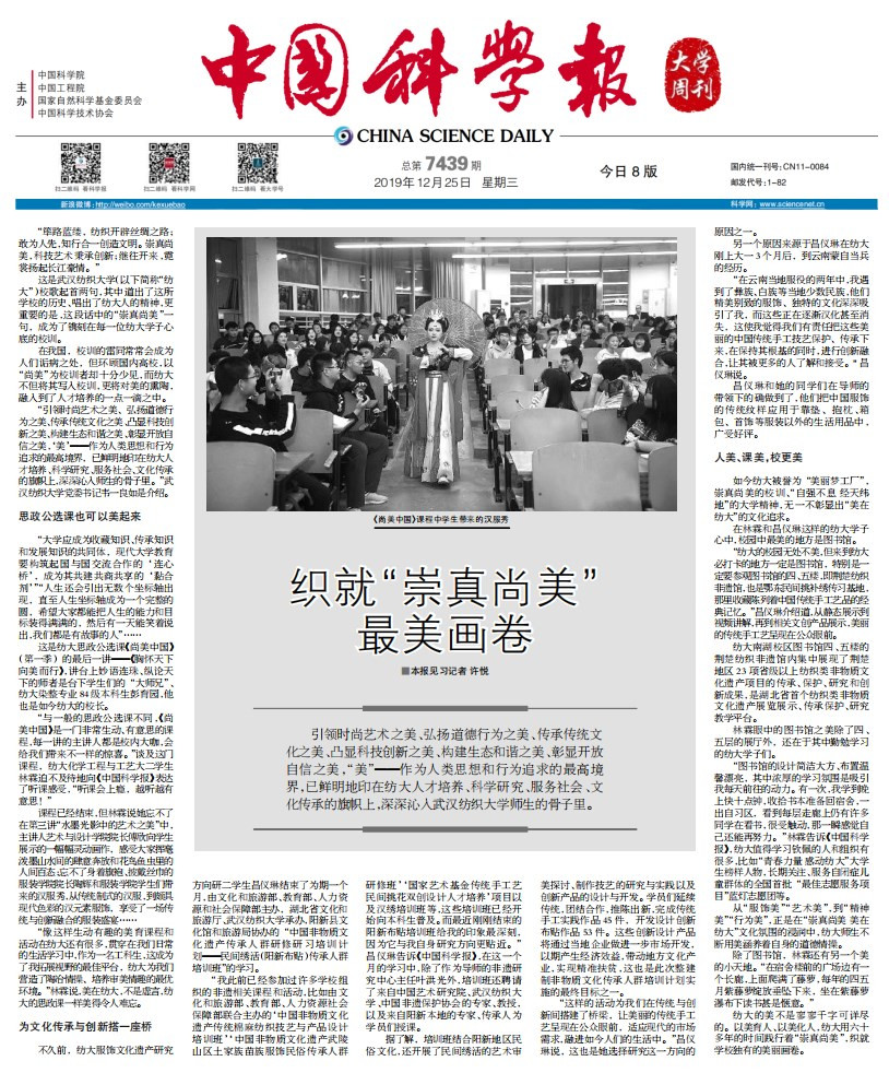 从“服饰美”“艺术美”,到“精神美”“行为美”,正是在“崇真尚美 美在纺大”文化氛围的浸润中,纺大师生不断用美涵养着自身的道德情操。