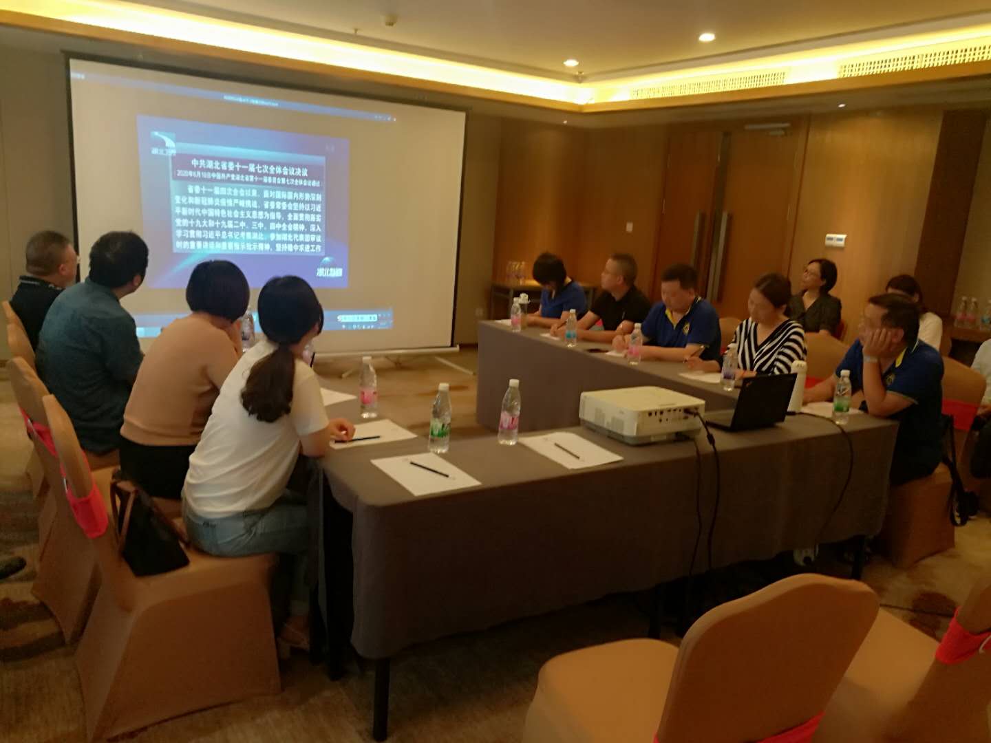 7月26日,教工一支部组织全体党员借赴荆门集体备课的机会开展一次别开生面的支部主题党日活动,活动内容为:专题学习中共湖北省委十一届七次全体会议精神,会议由支部书记杨红炳主持。