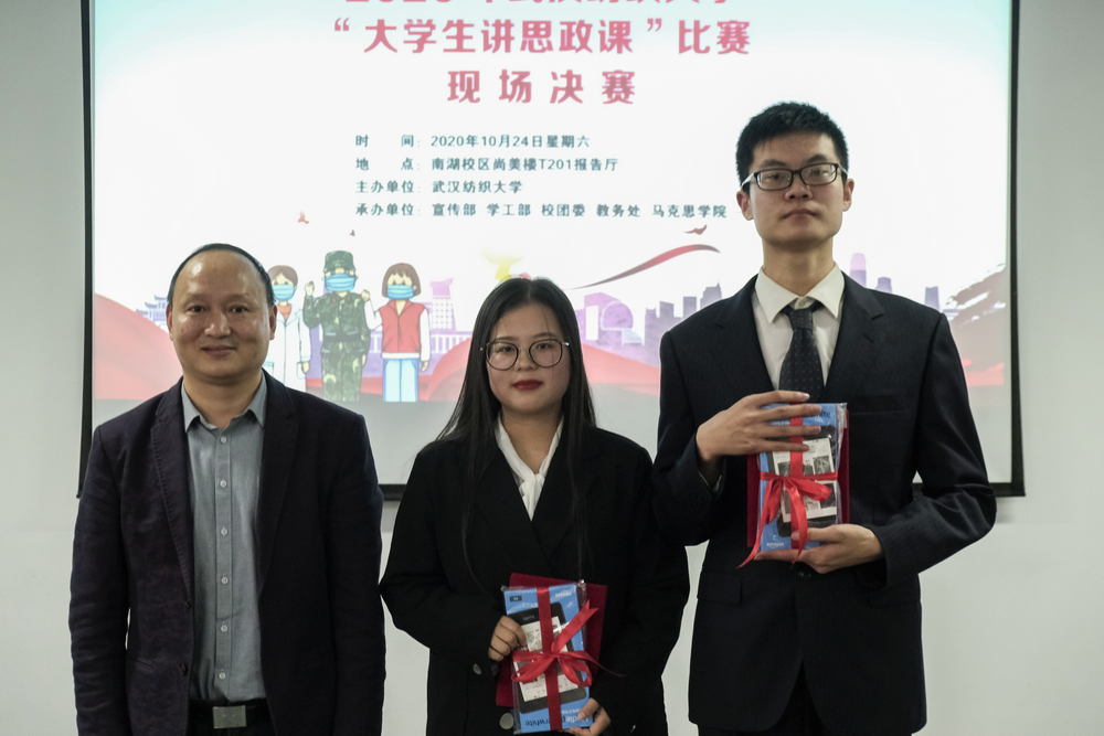 10月24日星期六,必赢官网2020年“大学生讲思政课”比赛现场决赛在南湖校区尚美楼705报告厅举行,来自9个学院的11个团队参加现场比赛。校党委常委、副校长唐敏教授莅临指导。为了把全国人民以习近平同志为核心的党中央坚持领导下抗击新冠肺炎疫情和决胜全面建成小康社会中的拼搏奋斗作为生动教材,引导大学生深化对思政课教学内容的认识和思考,展现新时代大学生的马克思主义理论素养和精神风貌,2020年比赛的主题为:共抗疫情,爱国力行;脱贫攻坚,决胜小康。