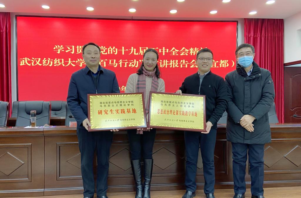 2020年12月30日,必赢贵宾会3003官网在宜都市陆城街道挂牌建设思想政治理论课实践教学基地和马克思主义理论学科研究生实践基地。授牌仪式由宜都市陆城街道办党工委书记杨超主持,宜都市委宣传部副部长刘斌出席,陆城街道办主任李先宁、陆城街道机关全体干部职工和各村(社区)两委班子成员以及必赢贵宾会3003官网院长金艳参加。