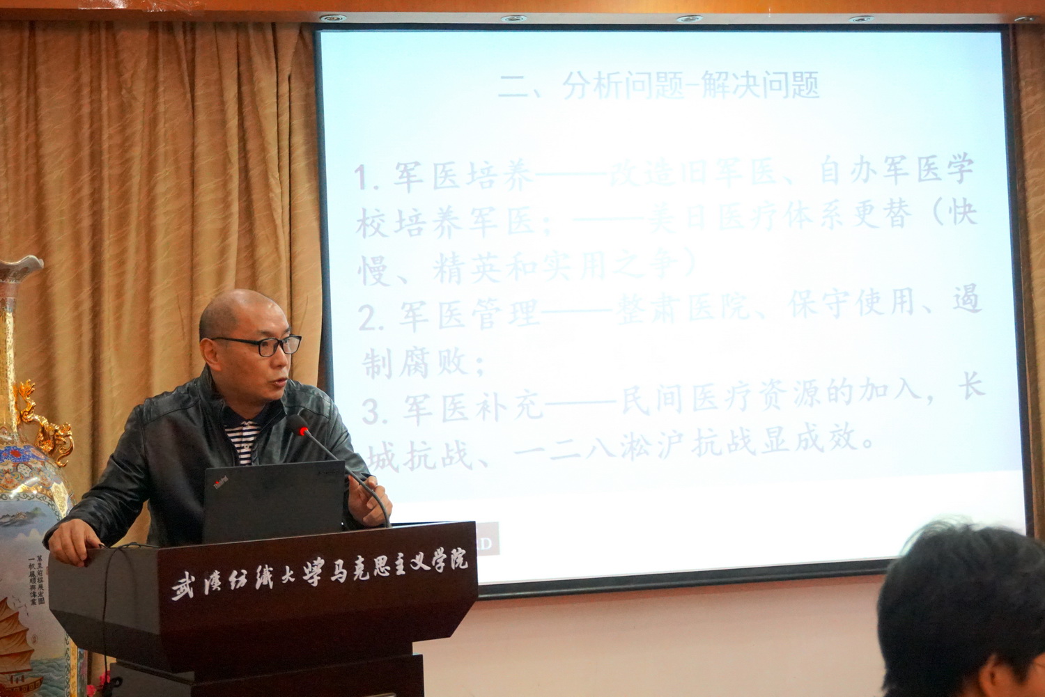 姜迎春副教授作“‘再造军医’:全面抗战前国民党军队的军医变革”主题报告。他从问题的提出、分析和解决、对论题的创新发展以及自身困惑四个方面展开,回答了在军医奇缺的抗战前期,国民党军队如何通过对军医的培养、管理和补充来进行救治。报告丰富了抗战史和军医史研究,并提出透过军医发现国家与社会关系重塑这一创新观点。何卓恩教授充分肯定论题的前沿性,高度赞扬文章将问题意识与学术对话密切结合,同时对内容的简化和写作布局提出自己的宝贵建议。