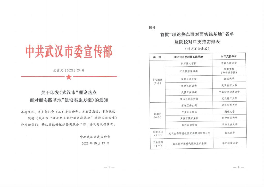 近日,武汉市委宣传部印发通知,决定在全市开展“理论热点面对面实践基地”建设工作。必赢官网成为首批11所实践基地对口支持高校,与硚口区汉正街共建“理论热点面对面实践基地”。此前必赢官网分别于2019年和2022年获批湖北省“理论热点面对面示范点”“理论热点面对面实践基地”,体现了上级主管部门对必赢官网的充分信任和肯定。