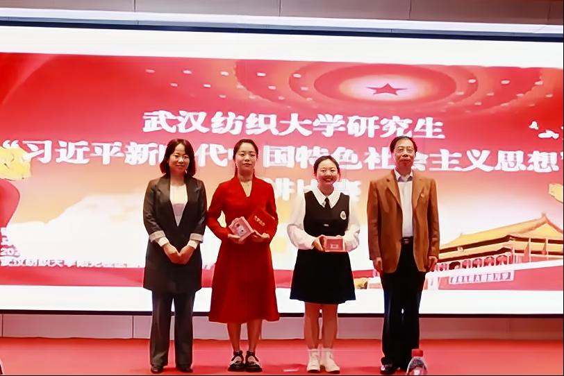 熊建生教授(右一)和刘欣部长(左一)为二等奖获得者刘璐华、丁珂曼颁奖