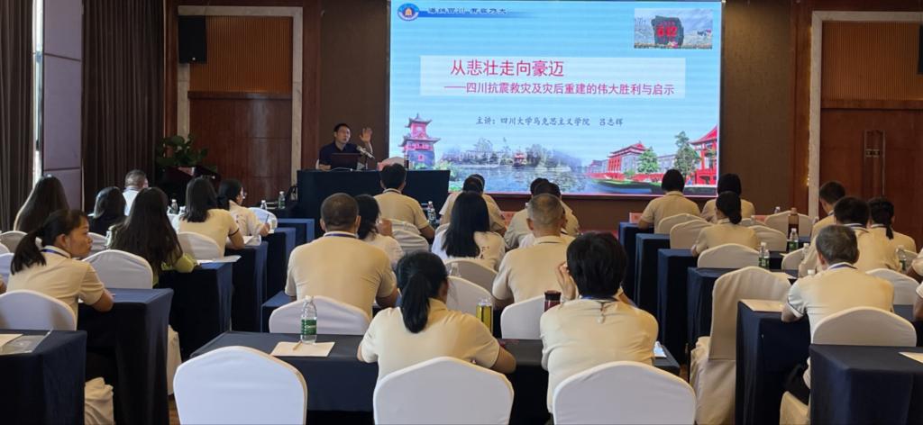 开班仪式后,四川大学必赢贵宾会3003官网副教授吕志辉为研修学员作了题为“从悲壮走向豪迈——四川抗震救灾及灾后重建的伟大胜利与启示”的专题报告。他立足“三个基地、一个窗口”介绍了四川省的基本概况,并以鲜活的案例为教学依托,围绕“5.12汶川特大地震概况”与“四川抗震救灾及灾后重建的伟大胜利”阐释了我国在灾后重建中所彰显的中国力量、中国速度和中国精神,深刻解读了“万众一心,众志成城、不畏艰险,百折不挠、以人为本,尊重科学”的伟大抗震救灾精神。最后,他围绕抗震救灾、灾后重建、加快发展的奇迹,结合思政课教学详细阐述了七点启示,与学员们探讨了提升思政课教学吸引力和实效性的路径。