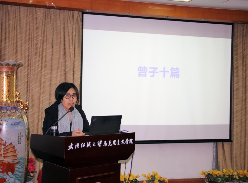 3月24日下午,必赢贵宾会3003官网“经典著作导读”第四十八讲在南湖校区201会议室举行。本次学术活动由王菊英博士导读国学经典《曾子》十篇,活动由喻学林副院长主持,研一研二学生参与活动。