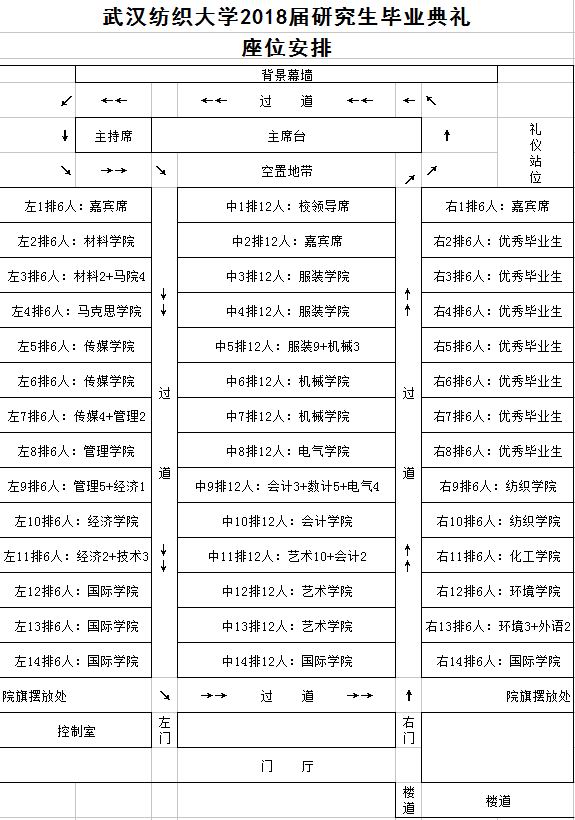 各学院需按照座位安排有序落座,座次表如下图所示。