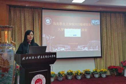 常沛教授作为导师代表致欢迎辞。她提出“为什么要学习马克思主义”这个问题供大家思考, 希望同学们牢记自己为什么出发,只有这样才能走的“正”,走的“远”。在提及“怎样学好马克思主义?”时,她引用中国传统文化经典“博学之,审问之,慎思之,明辨之,笃行之”来解答大家的疑惑,并号召同学们通过对马克思主义原著理论和历史的学习以及对新时代问题的探索,“去粗取精,去伪存真,”让马克思主义能够贯穿于同学们的人生发展之中。