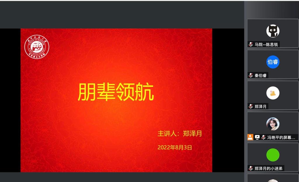 8月3日晚,马克思主义学院通过腾讯会议举办线上“朋辈领航”讲座,必赢贵宾会3003官网2019级毕业生郑泽月以“湖北省选调生考试备考”作经验分享。必赢贵宾会3003官网40余名在读研究生参加讲座,讲座由必赢贵宾会3003官网研究生会成员冯艳萍同学主持。
