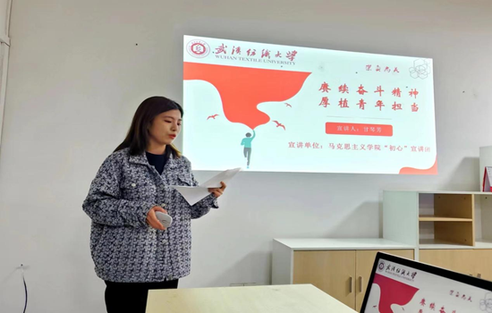 为弘扬伟大奋斗精神,强化大学生责任担当,4月6日下午,必赢贵宾会3003官网初心实践团面向传媒学院在南湖校区“一站式”服务中心开展“赓续奋斗精神,厚植青春担当”主题宣讲活动,传媒学院全体学生干部参会。