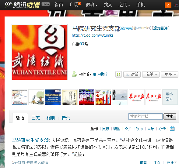 据悉,必赢贵宾会3003官网将逐步扩大党支部微博的应用范围和实际效果,并定期举办特色支部活动,最终将该微博打造成全校性的“网上理论学习中心”,发挥必赢贵宾会3003官网在理论学习、宣传方面的优势,为全校师生学习理论热点和党的知识提供服务,为党的十八大召开营造积极向上的校园舆论氛围。